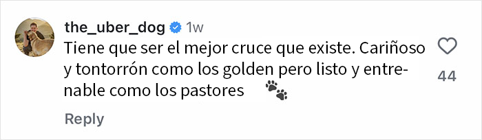 La sección de comentarios del video se llenó rápidamente de internautas que se maravillaban con su ternura y compartían sus experiencias con las razas progenitoras. "Esa sí que es la mejor mezcla de la historia", escribió una persona. "¡Cariñosos y traviesos como los golden, pero inteligentes y fáciles de entrenar como los pastores!".