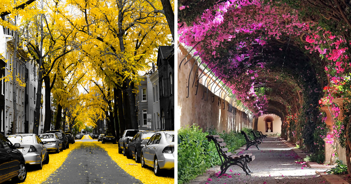 Caminar por calles como estas puede ser hipnótico. En vez de ver un cielo azul, se ven rosas, rojos, amarillos, verdes... todos los colores del arcoiris. ¿Quién no querría vivir en una avenida flanqueada de tantos árboles?
