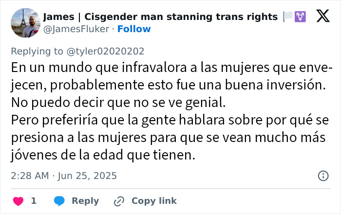 "Este es el mejor lifting facial que he visto sin ser una celebridad", escribió un usuario.