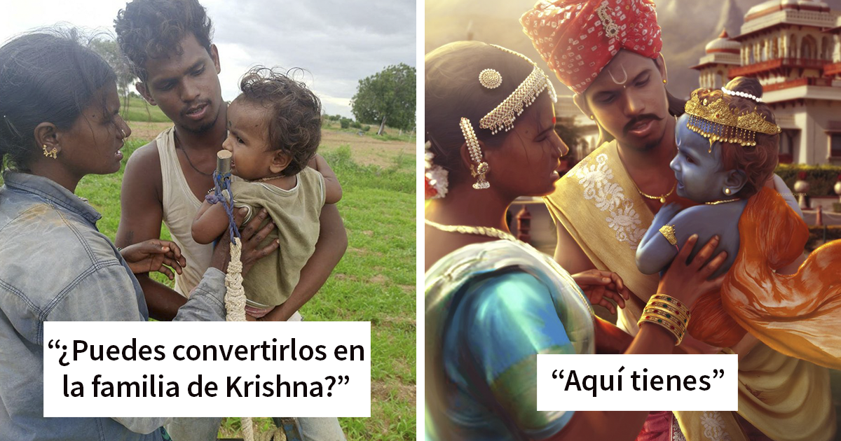 increíble edición convirtiendo a un niño pequeño en Krishna que todos se quedaron alucinados. Inmediatamente recibió miles de peticiones de la gente pidiéndole que photoshopeara sus fotos normales para convertirlas en imágenes mitológicas increíbles.