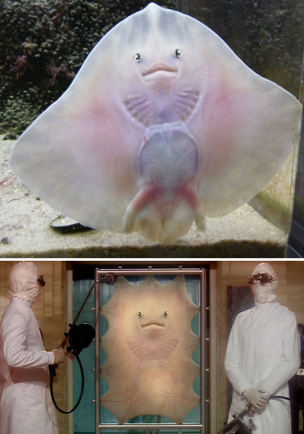 Mantarraya pegada a un cristal