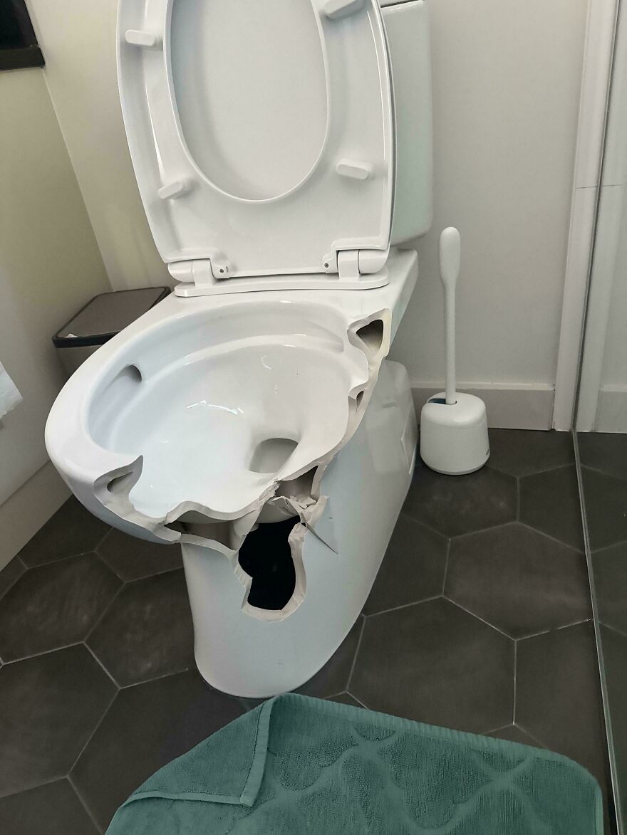 Mi esposa reventó el inodoro. Dejó caer un pisapapeles encima al abrir la ventana de arriba. Básicamente, una pequeña bola de bolos | Panda Curioso